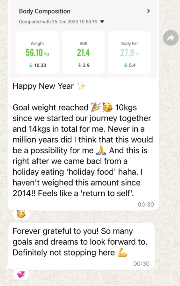 Before meeting Penelope, I struggled through a decade of weight loss attempts - intermittent fasting, keto, and intense workouts - that always felt painful and temporary. I was also addicted to sugar and I ate copious amounts of chocolate every single day. Penelope's approach, free from strict diets, made weight loss feel easy and natural. Her guidance helped me shed past trauma, heal my energy, and I often return to her powerful weight loss activation meditation. I’ve lost 11kgs, and for the first time in 8 years, my wedding ring is about to fall off. Penelope’s unique method brought me back to the truest version of myself, making the weight loss follow naturally. I highly recommend her for anyone seeking a truly lasting transformation.